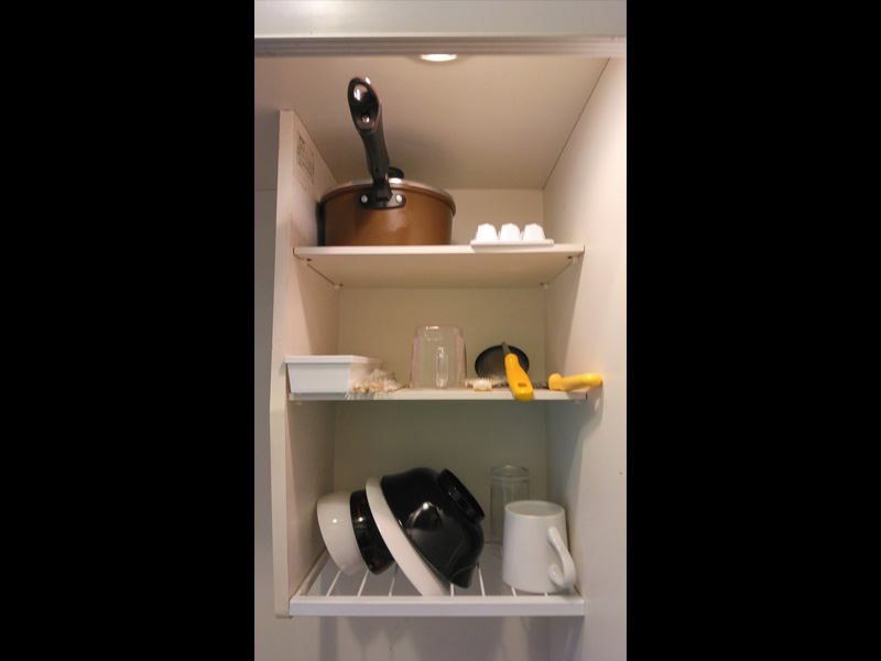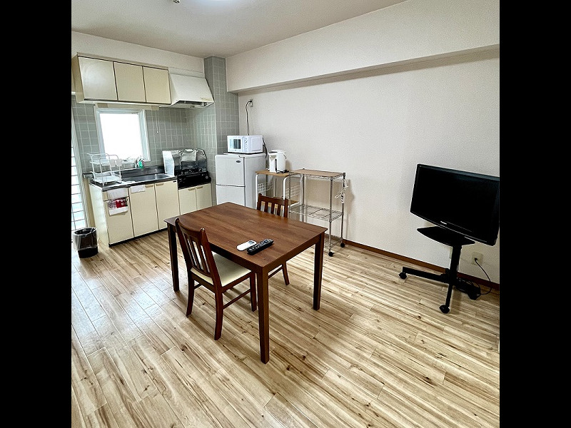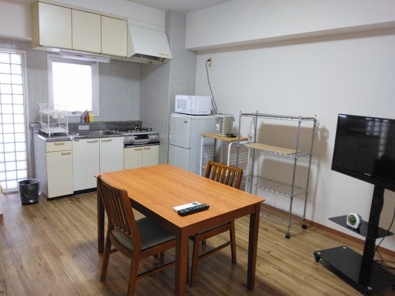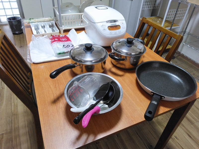簡単な調理器具・食器つきで連泊にも便利です。