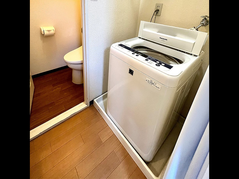 洗濯機(ベランダ・一部部屋付き設置)・室内物干し・エアコン・ユニットバス(洗浄機能付きトイレ)